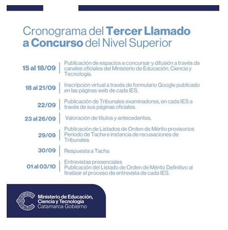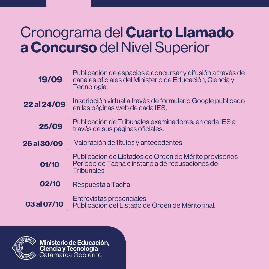 👉🏻 A través de la Dirección de Educación Superior, informamos el cronograma para el 5º llamado a concurso, para la cobertura de interinatos y suplencias en los Institutos de Educación Superior (IES) de gestión estatal de la provincia.